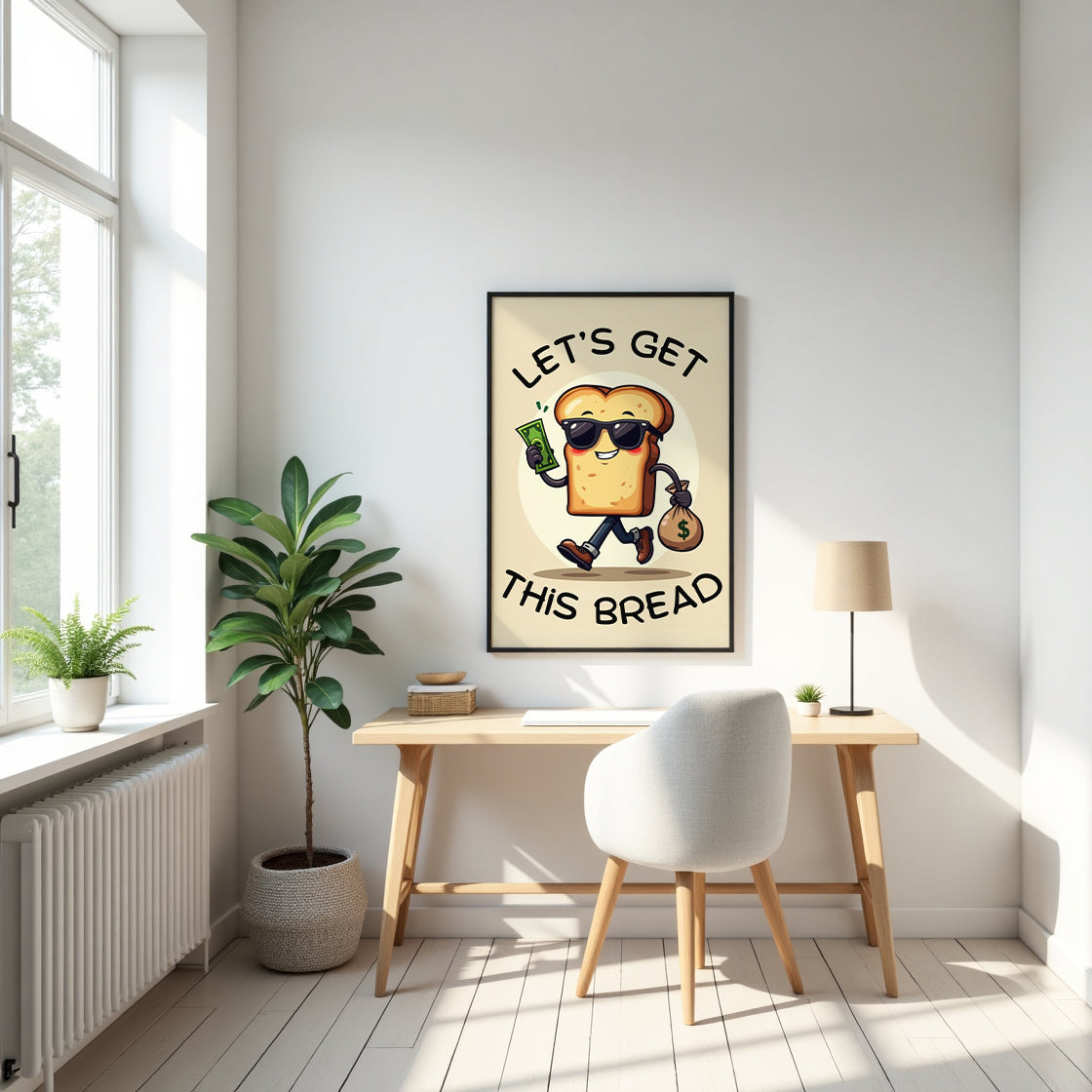 This artwork is a great gift for friends, colleagues, or anyone who loves a humorous twist on motivational decor. Perfect as wall art in a home office, bedroom, or shared workspace, it sets the tone for success – because we’re all about ‘getting that bread’ with a smile.