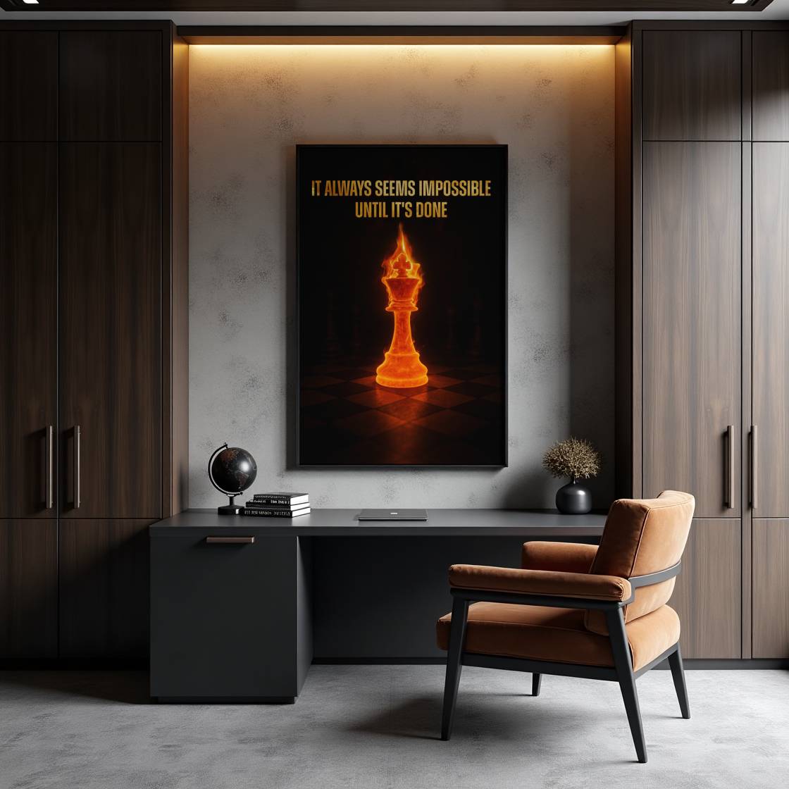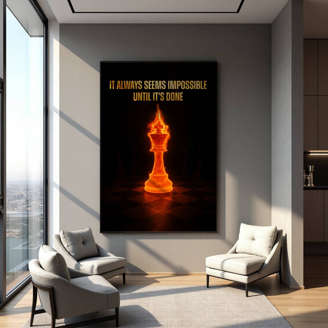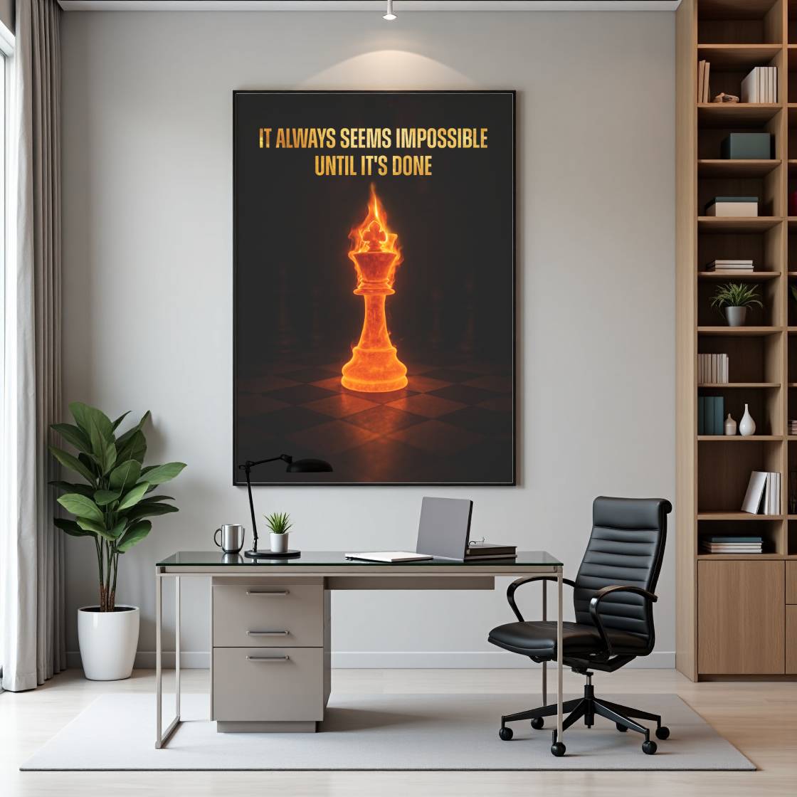 The difference between impossible and done is mindset. Unstoppable Mindset features a fiery chess king standing tall — a symbol of strategy, resilience, and power. This bold motivational wall art embodies the spirit of those who refuse to quit, reminding you that true victory begins long before the win — it starts in the mind. Perfect for entrepreneurs, traders, and visionaries who play to dominate, not just compete.
